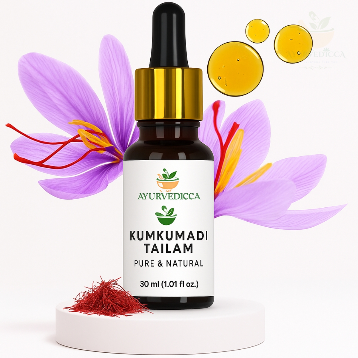 Experience radiant, youthful skin with Kumkumadi Tailam by Ayurvedicca – an Ayurvedic facial oil enriched with Saffron, Sandalwood, and Manjistha. This powerful blend helps reduce pigmentation, dark spots, and dullness while deeply nourishing your skin for a natural, golden glow.